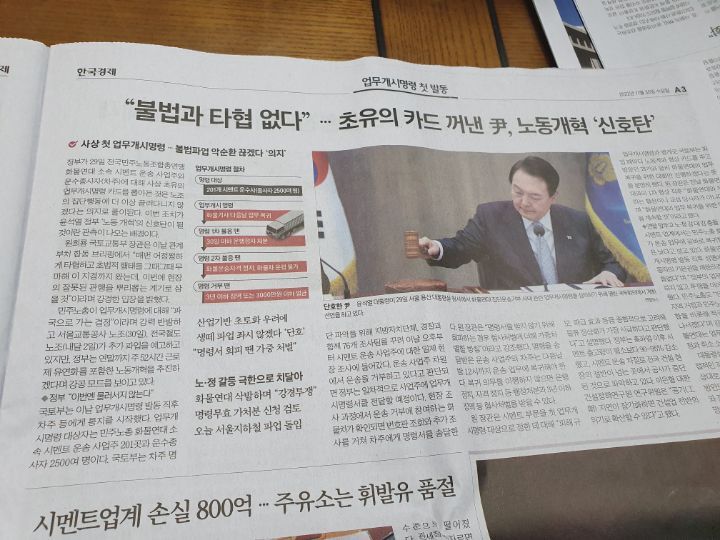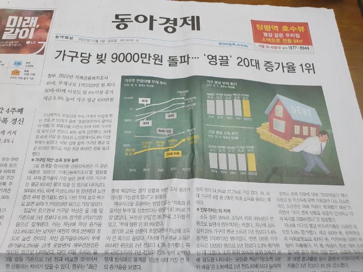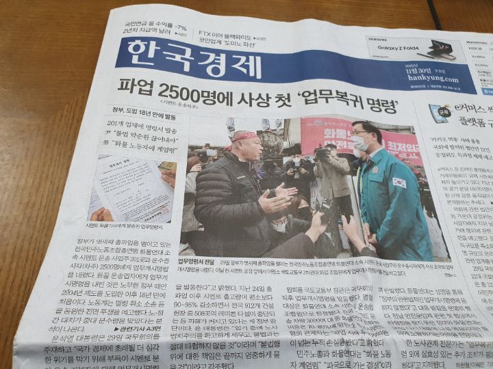 신문: 생산감소,이상민해임,영끌빚투,화물연대,철도파업,강택민사망,가구당 빚 9000만원,민노총,위믹스상패(1.23 토)