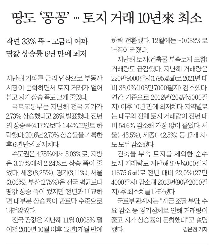 신문: 공모주,집값하락,경기침체,역성장,러시아공격,건설사부도,중국인이민과 방역,테슬라,전세한파(1.27 금)